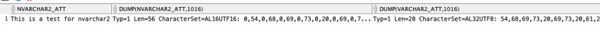SELECT attribute_name, DUMP(attribute_name,1016) FROM demo_nvarchar2;