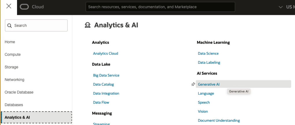 The first thing you need to be aware of, and to check, before you proceed, is whether the Text-to-Speech is available in your region. At the time of writing, this feature was only available in Phoenix, which is one of the cloud regions I have access to. There are plans to roll it out to other regions, but I’m not aware of the timeline for this. Although you might see Speech listed on your AI menu in OCI, that does not guarantee the Text-to-Speech feature is available. What it does mean is the text trans scribing feature is available.