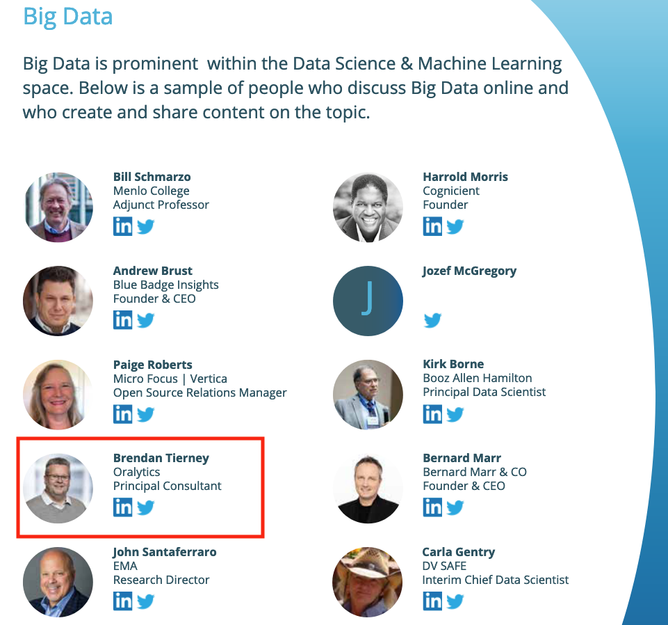 I’ve received notification I’ve been listed in the “Who’s Who in Data Science & Machine Learning?” lists created by Onalytica. I’ve been listed in not just one category but two categories. These are: