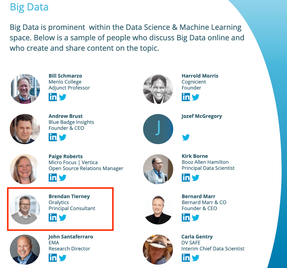 This is what Onalytica says about their report and how the list for each category was put together. “The influential experts are selected using Onalytica’s 4 Rs methodology (Reach, Resonance, Relevance and Reference). Quantitative data is pulled through LinkedIn, Twitter, Personal Blogs, YouTube, Podcast, and Forbes channels, and our qualitative data is pulled by our insights and analytics team, capturing offline influenc”. “All the influential experts featured are categorised by influencer persona, the sector they work in, their role within that sector, and more from our curated database of 1m+ influencers”. “Our Who’s Who lists are created using the Onalytica platform which has a curated database of over 1 million influencers. Our platform allows you to discover, validate and categorise influencers quickly and easily via keyword searches. Our lists are made using carefully created Boolean queries which then rank influencers by resonance, relevance, reach and reference, meaning influencers are not only ranked by themselves, but also by how much other influencers are referring to them. The lists are then validated, and filters are used to split the influencers up into the categories that are seen in the list.”