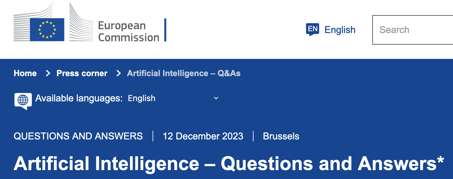 As the EU AI Regulations move to the next phase, after reaching a political agreement last Nov/Dec 2023, the European Commission has published answers to 28 of the most common questions about the act. These questions are: