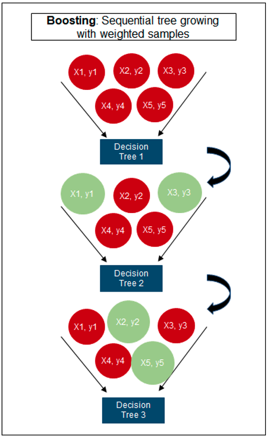 The following three images illustrates the differences between Decision Trees, Random Forest and XGBoost.