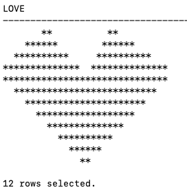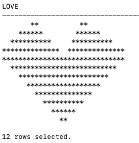 RPAD('*', (heart_top.lev*4)+2, '*') love