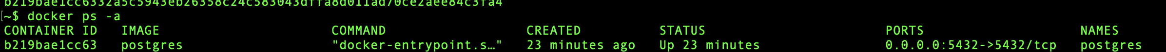 If you now check with Docker you’ll see Postgres is now running on post 5432.