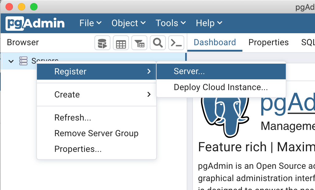 Next you will need pgAdmin to connect to the Postgres Database and start working with it. You can download and install it, or run another Docker container with pgAdmin running in it.