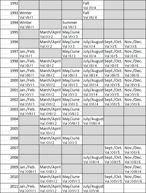 I though that I had a full collection of Oracle Magazine from 1993 onwards, but the table below shows that I have a number of missing editions. Perhaps these gaps are due to my good nature of lending them to other people, or maybe I just lost them somewhere.