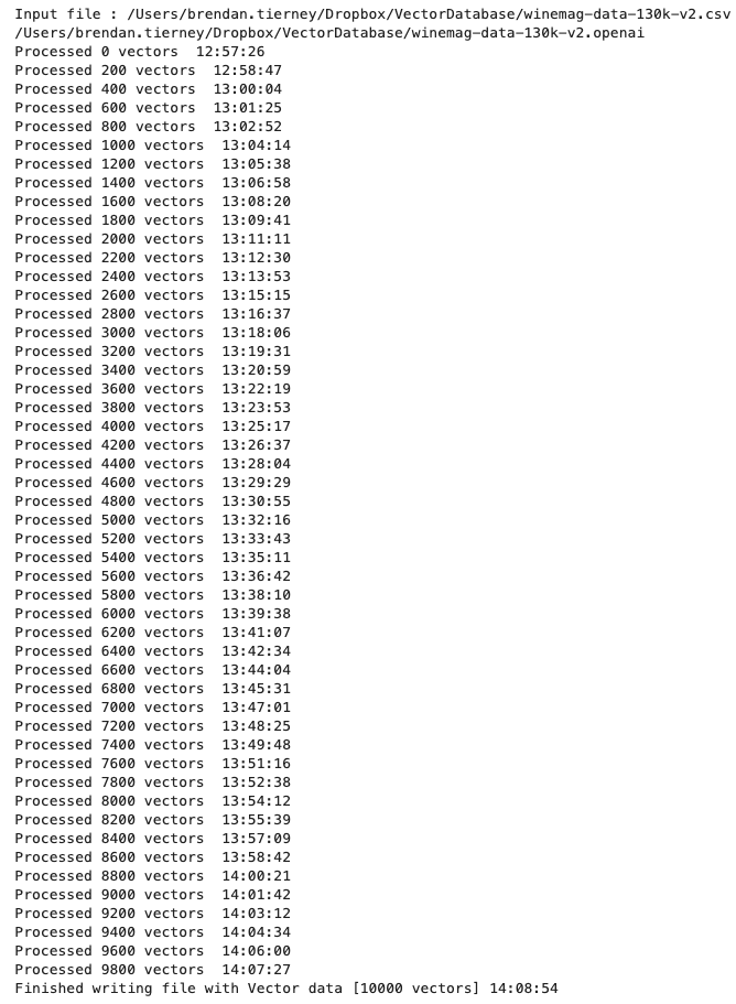 print(f"Finished writing file with Vector data [{index+1} vectors]", time.strftime("%H:%M:%S", time.localtime()))